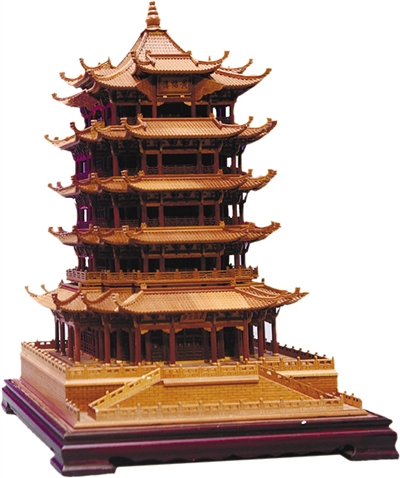 参赛选手现场展示的“样式雷”—黄鹤楼木结构模型