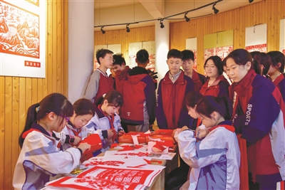 在贵溪市书画艺术展览中心内,“中国天眼”“雪龙破冰”“蛟龙入海”……一幅幅色彩明艳、生动传神的剪纸作品吸引了学生们驻足观看。学生们一边欣赏作品,一边听老师讲解每幅剪纸作品蕴含的意义。“以剪纸的形式展现新时代维护国家安全取得的重大成就非常具有吸引力,在欣赏传统艺术魅力的同时,我们还学习了国家安全知识。”来自贵溪市第九中学的学生黄依诺说,作为新时代的学生,要加倍努力学习,增强本领,强化国家安全意识,积极为维护国家安全贡献自己的一份力量。